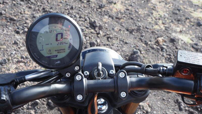 La strumentazione è composta da un singolo strumento LCD che riporta oltre alle consuete informazioni l'autonomia con il carburante all'interno del serbatoio, la modalità dell'ABS (Road o Rain, commutabile dal blocchetto destro), due trip e le informazioni riguardo la connettività attraverso l'app di TVS a comando vocale. Disponibile in optional una presa USB, mentre sull'esemplare in prova vedete le barre di protezione che in Italia sono di serie ma che - ci informa TVS Italia - sono montate a discrezione del cliente. L'impianto di illuminazione è Full LED con una peculiare firma ottica all'anteriore e non mancano il doppio cavalletto, centrale e laterale, oltre alle leve di freno anteriore e frizione regolabili.