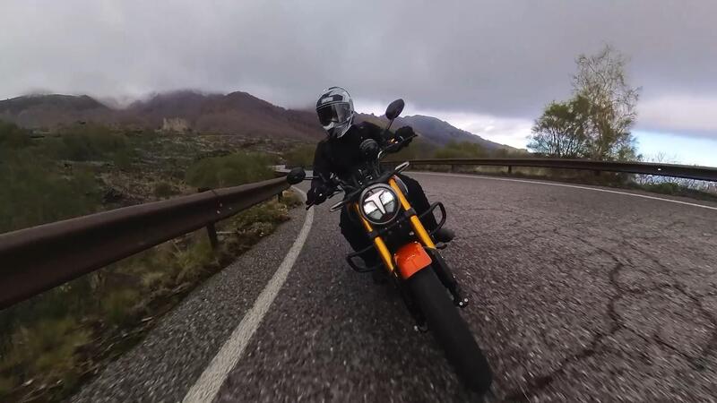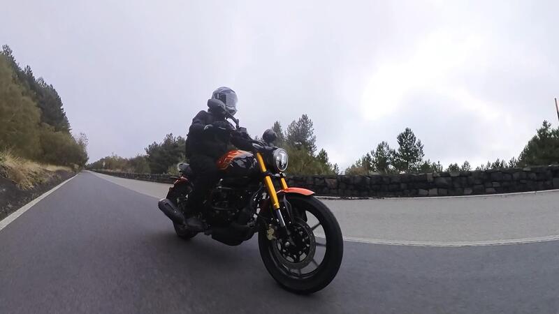 La TVS Ronin 250 è innanziutto una moto accogliente grazie alla sella larga, piatta e lunga, a pedane avanzate e al manubrio non troppo largo e vicino al busto del pilota. Si è piuttosto "sopra" la moto ma la sensazione di controllo è buona, mentre le vibrazioni contenute e la scarsa trasmissione di calore alle gambe fanno salire la valutazione sul comfort a tutte le andature. Su questo tema ci è sembrata ben assortita la coppia di sospensioni anteriore e posteriore con il mono a gas che sconta però una taratura forse orientata anche a sostenere carichi più significativi del vostro tester da 70 kg e quindi con una risposta un po' brusca sulle asperità impulsive. Nulla che comprometta la sicurezza o il divertimento, in ogni caso. Regolati gli specchietti e messo in moto il monocilindrico (a proposito, l'avviamento è particolarmente vellutato) non resta che inserire la prima e goderci una ciclistica che sulle curve è sincera e neutra.