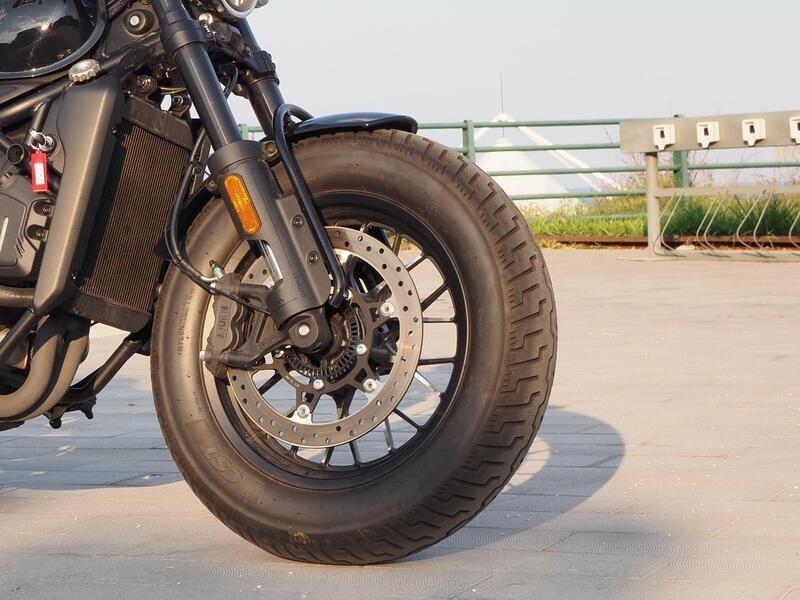 Bella inoltre la finitura del bicilindrico con delle finte alette e con una targa che ricorda l'anno di fondazione di CFMOTO, con il radiatore che è una presenza discreta e non ingombrante dal punto di vista dello stile. La sella in due pezzi con una semplice cinghietta per il passeggero fa immediatamente capire che l'adesione ai canoni cruiser è piuttosto serrata, così come per quanto riguarda la posizione della chiave di contatto a fianco del motore, con il bloccasterzo spostato dove era un tempo, a fianco del cannotto di sterzo.
