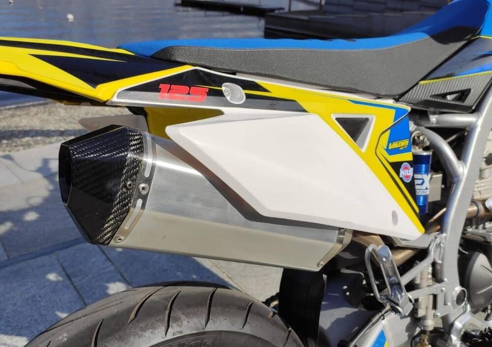 Oggi vi presentiamo la SM125Z, dotata di telaio in acciaio, forcellone in alluminio, sospensioni regolabili e un moderno motore Derbi (gruppo Piaggio quindi) 4 tempi, con raffreddamento a liquido, distribuzione bialberlo, iniezione elettronica, cambio a 6 marce e scarico con finale in vera fibra di carbonio.