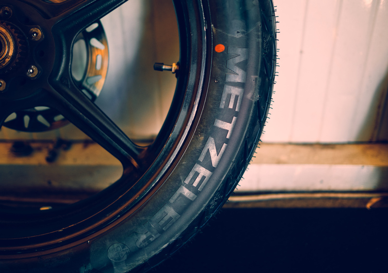 Per la Bimota e la Moto Guzzi, come abbiamo visto, la scelta è caduta sulle Metzeler Racetec RR calzate rigorosamente nelle misure originali. Le Racetec RR sono coperture radiali dedicate a chi della moto fa un utilizzo molto sportivo sia su strada che su pista e sono disponibili in tre mescole: K1, K2, K3 con quest'ultima come opzione più dura e dalla maggiore resa chilometrica. Il posteriore è bimescola.
