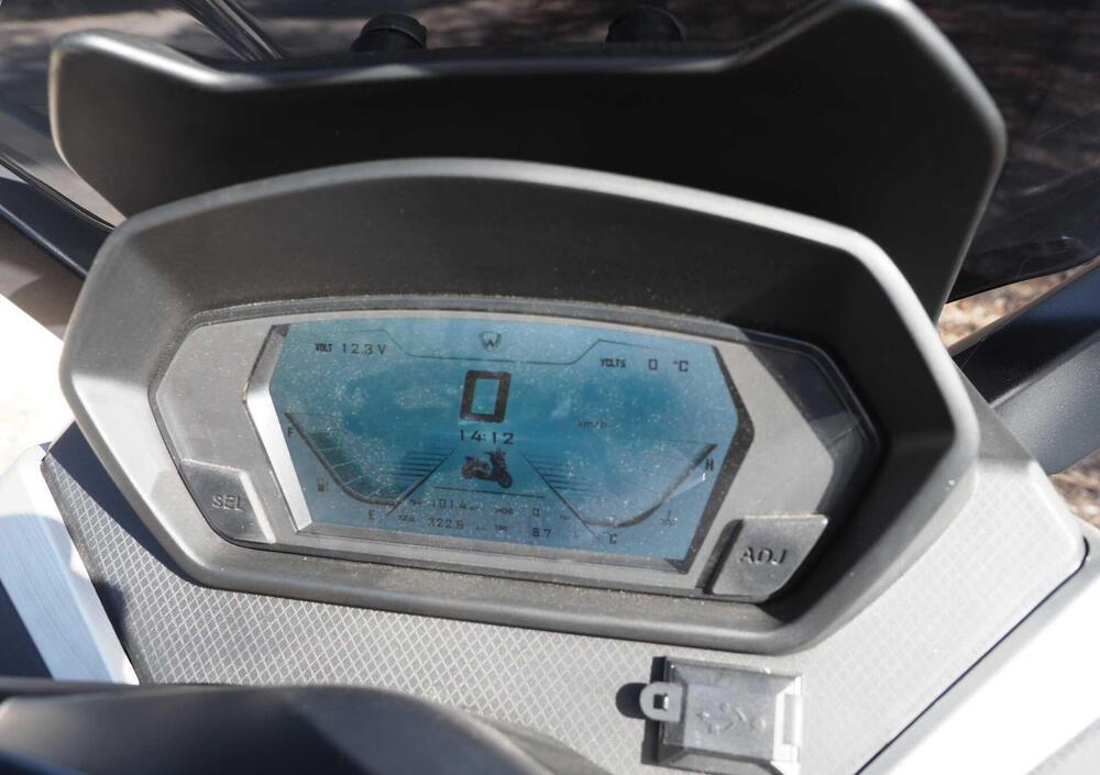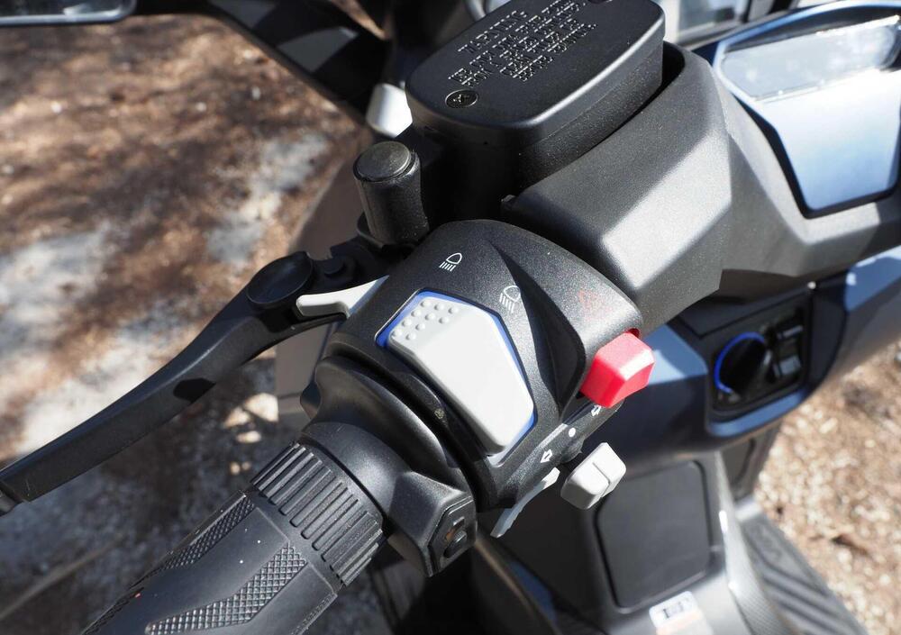Belle le leve regolabili su 5 posizioni così come il parabrezza (ma non in marcia, per effettuare la regolazione bisogna agire con due mani), non manca la presa USB posizionata accanto la strumentazione, mentre il cavalletto centrale è affiancato da una stampella laterale comoda da azionare. Comoda anche l'apertura del vano per l'accesso al tappo del serbatoio del carburante da 14,5 litri attraverso un pratico pulsante accanto al pomello per l'avviamento (a proposito: nonostante il keyless, è sempre possibile avviare lo scooter con una chiave meccanica, in caso di emergenza). Medesima soluzione per il vano sottosella, capiente e discretamente regolare: peccato non sia presente una luce di cortesia.