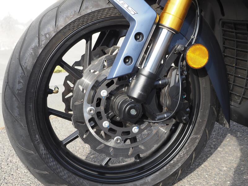 I cerchi sono da 15” all'avantreno e da 14” dietro, e calzano pneumatici Timsun nelle misure 120/70 e 140/60 sui quali ricade l'onere di fare da interfaccia con un impianto frenante - provvisto di ABS - che strizza l'occhio alla sportività: troviamo una coppia di dischi con profilo a margherita da 260 mm morsi da pinze ad attacco radiale e quattro pistoncini, mentre dietro il singolo disco è da 230 mm e gestito da una pinza a doppio pistoncino a diametro differenziato. Il peso dichiarato è di 186 kg e – spoiler – appare ben distribuito.