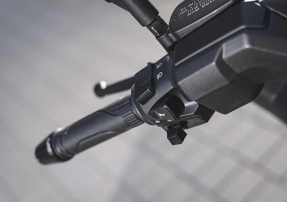 La posizione in sella è decisamente comoda, alta 840mm, ci si trova subito a proprio agio, la sella è bella ampia, anche in ottica passeggero a cui è riservato un ampio appoggio e maniglioni dalla facile presa. Il peso è posizionato in basso e questo lo rende stabile anche in manovra da fermo. È uno scooter con un interasse abbastanza lungo, una caratteristica che offre tanta stabilità, anche sui curvoni più veloci senza compromettere troppo l’agilità sullo stretto e tra le maglie del traffico cittadino.