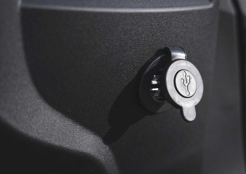 La strumentazione conta su un doppio orologio dalle generose dimensioni, uno per leggere la velocità, l’altro per i giri motore, in più, centralmente, ecco un display TFT a colori da 5” su cui poter leggere il livello del carburante, la temperatura del liquido di raffreddamento e nuovamente la velocità oltre alle altre tipiche informazioni di bordo. Non manca una doppia presa USB posta sul retro dello scudo; super capiente il vano sottosella, si apre attraverso un pratico pulsante (così come per l’accesso al serbatoio del carburante) può contenere un casco integrale e un casco jet senza problemi. Infine, a differenza del modello Strom-S +, i blocchetti non sono retro illuminati, ma sono ti tipo tradizionale.