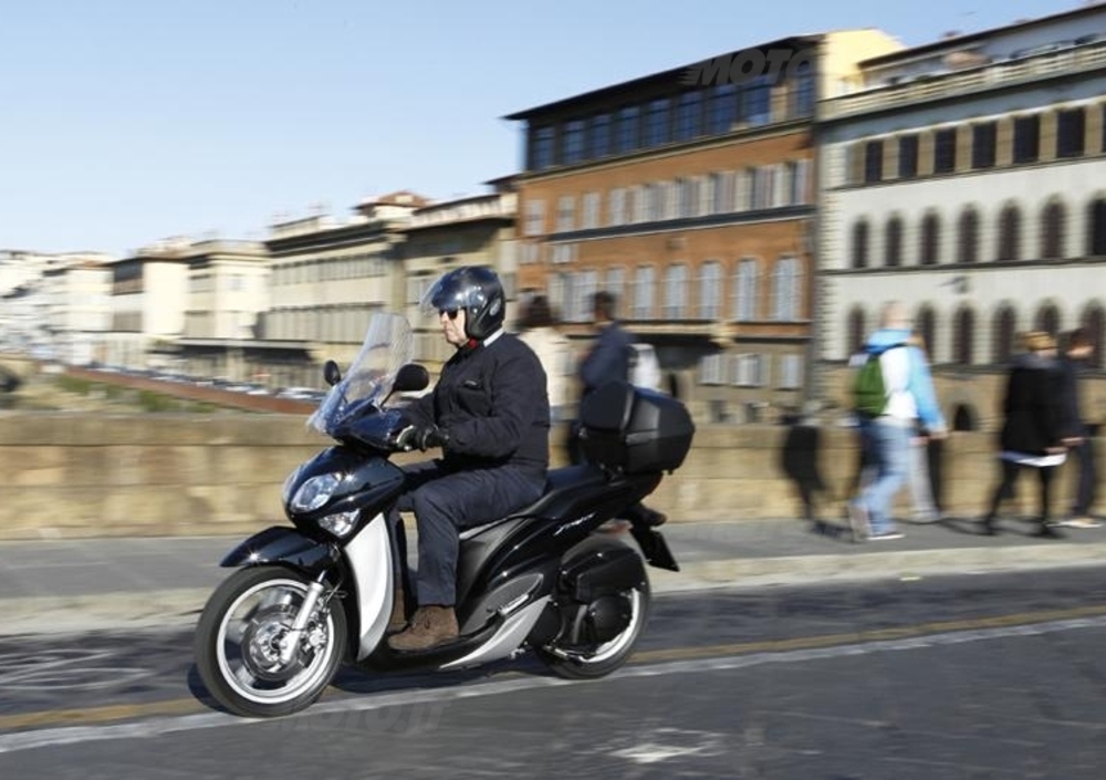 Ma veniamo alla prova di questo nuovo protagonista cittadino, svoltasi a Firenze con escursione alla volta delle colline del Chianti, notoriamente prodighe di bellissime strade, oltre che di numerosi quanto antipatici (per usare un eufemismo) autovelox. Al di là della sua magnifica ambientazione, il capoluogo toscano non è stato scelto casualmente per questo evento, in quanto rappresenta la terza piazza italiana per il mercato degli scooter, in particolare di questo segmento. In effetti, a Firenze sembra davvero che le moto se le siano scordate: i parcheggi pullulano letteralmente di file lunghissime di scooter, raramente inframmezzati da qualche moto (una su venti, facendo un conto della serva).