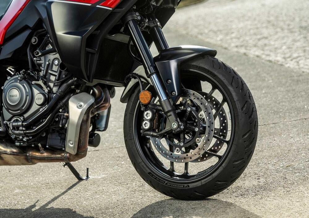 Per quanto riguarda l’aspetto ciclistico considerate che le nuove Tracer 7 hanno il telaio in acciaio ridisegnato per garantire maggiore rigidità torsionale, longitudinale e laterale. Nuovo anche il forcellone, ora allungato di 40mm e più rigido rispetto al modello precedente. Rinnovata anche la forcella a steli rovesciati da 41mm è regolabile in estensione, nuove le pinze freno anteriori, ad attacco radiale e nuove anche le ruote più leggere delle precedenti e che ospitano pneumatici di primo equipaggiamento Michelin, nel modello Pilot Road 6 GT.