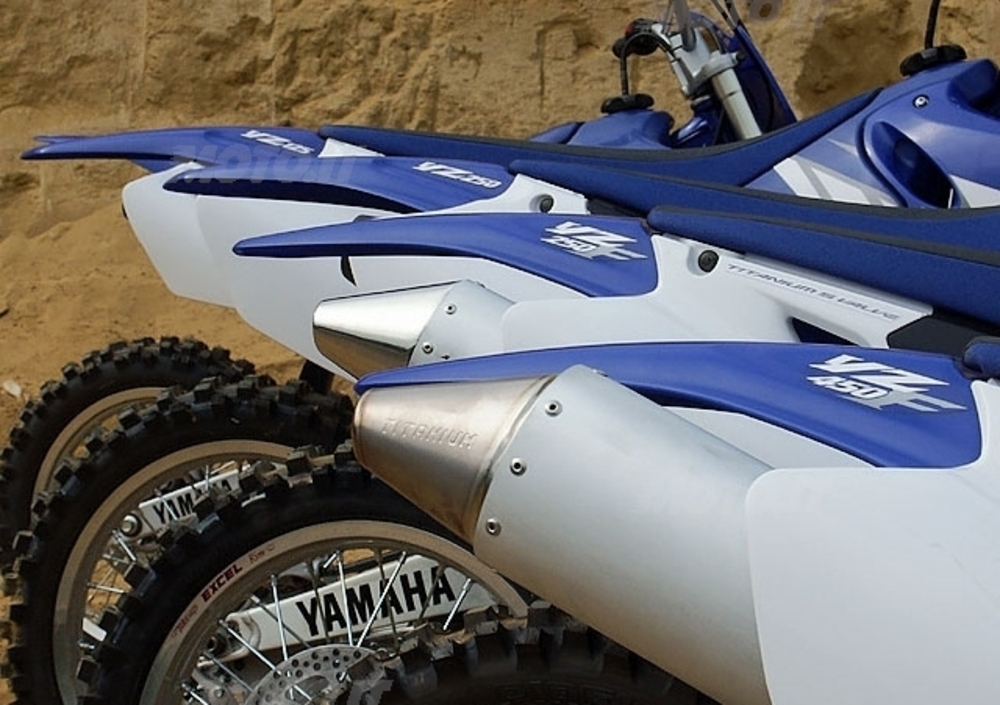 La YZ 250 F del 2004 ha una serie di componenti nuovi e più leggeri. Lo scarico è in titanio, i tubi dell’olio in alluminio, per una riduzione dei pesi complessiva di 290 g.