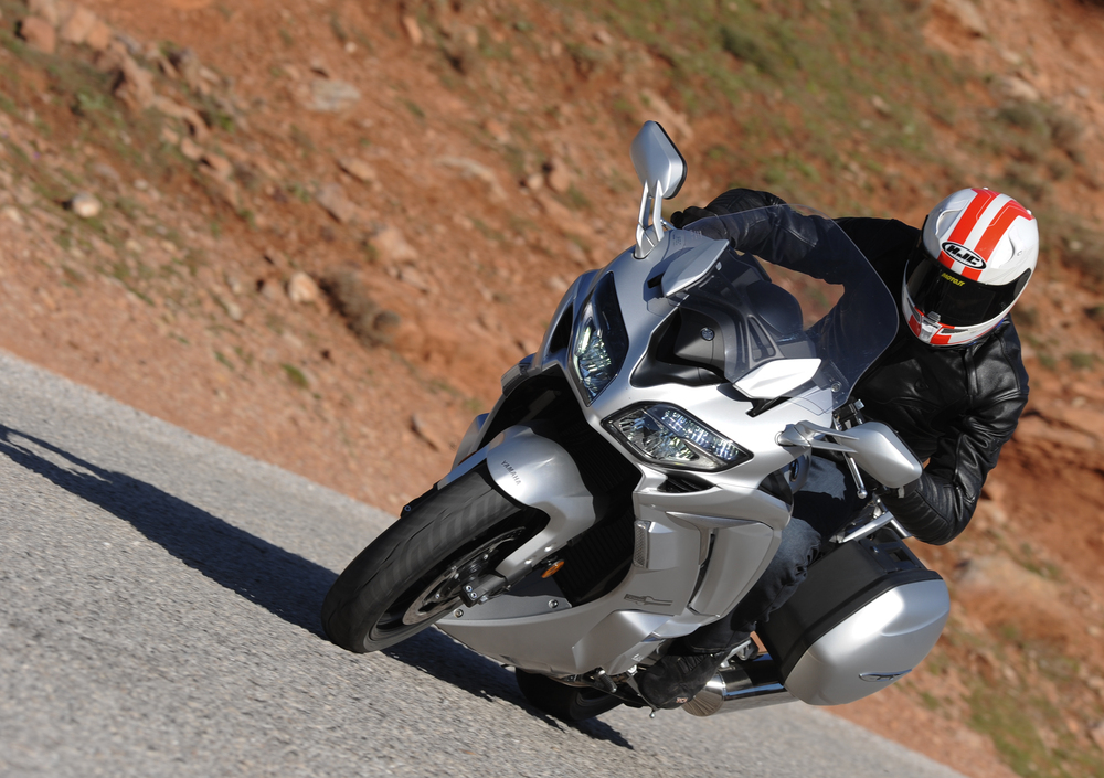 In movimento i chili spariscono e la Yamaha 1300 sfoggia il grande bilanciamento che la rende agile persino in città. Non è un caso che sia la moto prediletta dai corpi di polizia di diversi Paesi, Francia in testa. Il motore ha una progressione spettacolare. Tiene senza problemi la quinta in città a 40 km/h, in sesta a 130 dorme beato a 3.800 giri. Ma basta un niente per lanciare la FJR a velocità da autentica sportiva e fare bye bye alle endurone (a quasi tutte, sia chiaro). Il quattro cilindri da 145 cavalli è fluido e gentile a 1.000 giri, ma la verve viene fuori passati i 3.000. Fino a 6.000 giri spinge con veemenza, poi dai 6 agli 8.000 (regime di potenza massima) esplode e regala sorpassi fulminei. La mappa touring è sin troppo garbata, abbiamo preferito la sport nel misto, perché dona una reattività esaltante all’acceleratore. Il consumo si è attestato sui 6,2 l/100 km.
