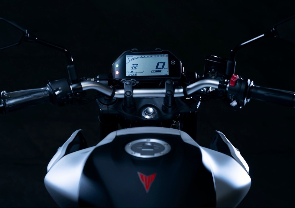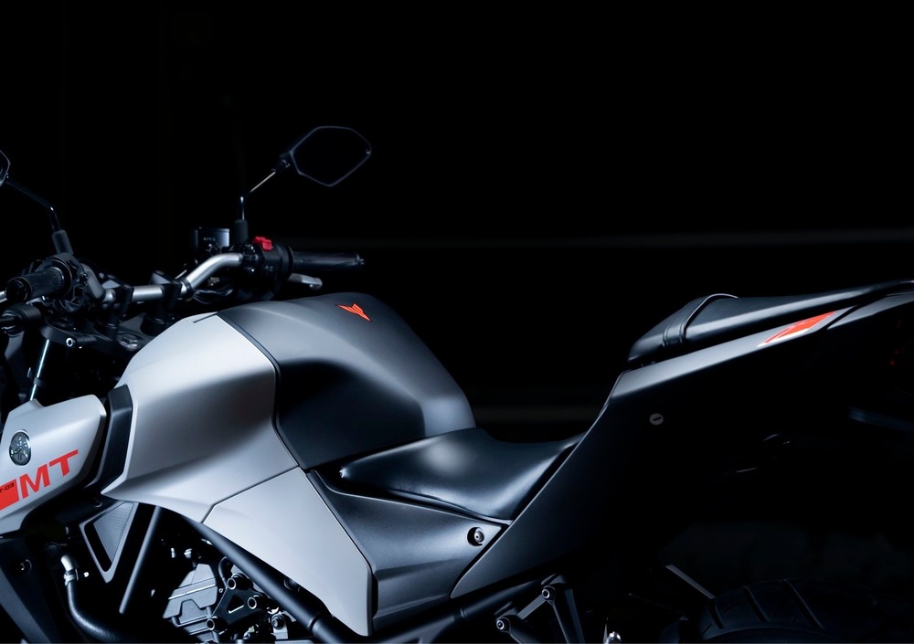 Mai come prima, la MT-03 si avvicina alla MT-09, la più grande della famiglia delle naked di Iwata: il look è tutto nuovo, a partire dal gruppo ottico anteriore, completamente a LED, e con due piccole luci diurne esattamente sopra il faro centrale. La mascherina in nero opaco, che guarda verso il basso, la rende ancora più aggressiva e, in più, c’è anche il nuovo serbatoio con linee più muscolose e avvolgenti. Come in passato, il codino deriva da quello sella carenata, quindi è molto affilato e spigoloso, con la sella del passeggero indipendente.