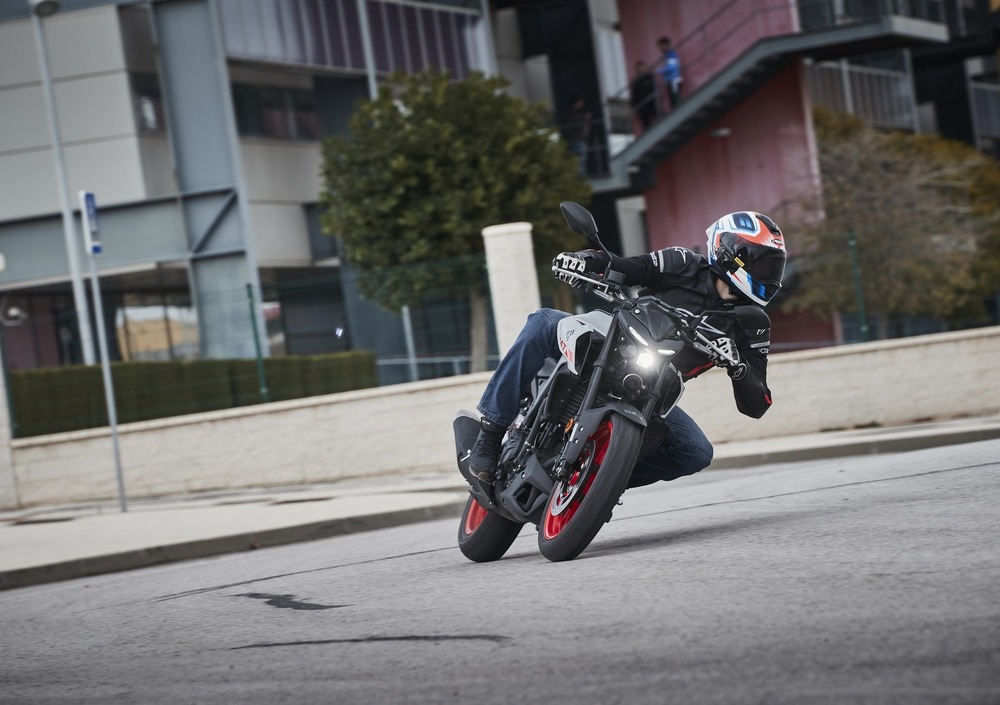 Come vi abbiamo anticipato, la novità più importante a livello dinamico è la nuova forcella a steli rovesciati da 37 mm. Sulla carta rende la ciclistica più rigida e più precisa: purtroppo, a causa delle condizioni meteo non siamo riusciti a metterla alla frusta ma, anche con asfalto bagnato, è emersa una grande qualità della MT-03: la facilità di guida. Fin dai primi metri, trasmette tanta confidenza (ancora più di prima) e si sente di avere sempre il comando della moto. Questa scelta della Casa di Iwata rende la fun-bike più accessibile, anche grazie alla seduta non troppo alta: 780 mm da terra.