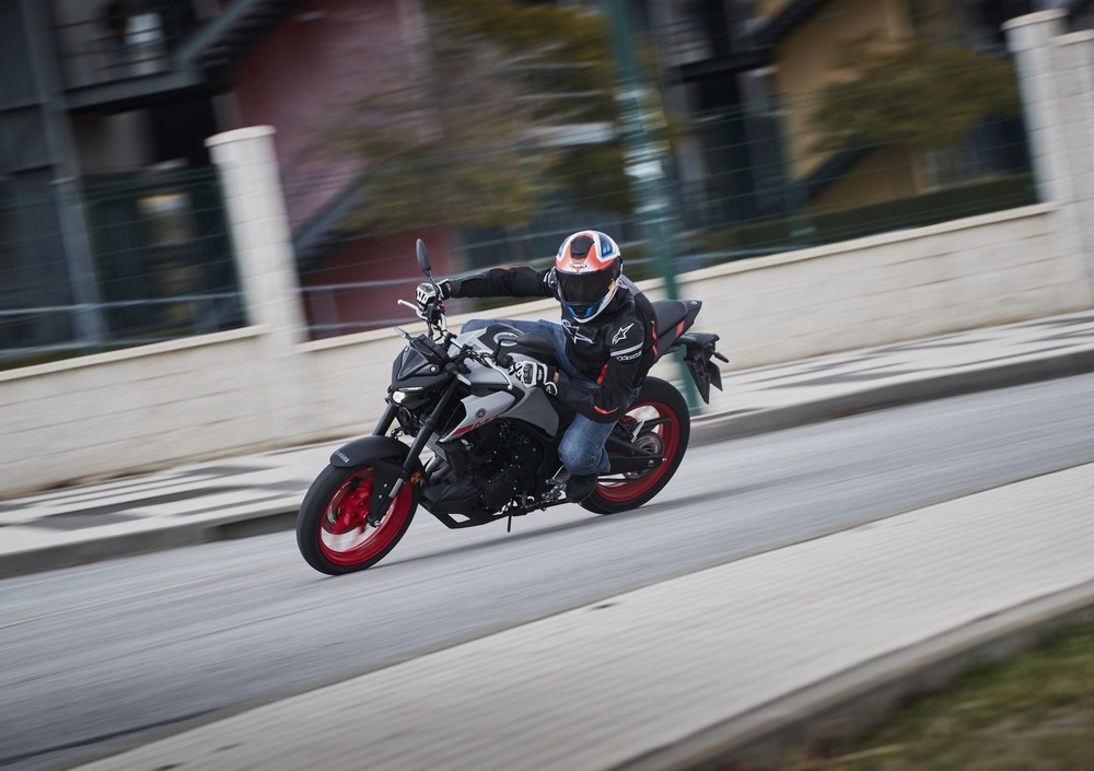 La nuda di Iwata è molto pratica da usare in città: il motore bicilindrico in linea da 321 cc conferma la linearità di erogazione e un allungo degno di una sportiva. Non strappa mai, anche a bassi regimi: l’unica nota negativa è un leggero effetto on/off sugli attacchi del gas, che obbligano a essere più delicati sulla manopola destra ad andature lente. Quando ci si sposta nell’extraurbano, sopra i 110 km/h l’aria colpisce dal petto in su: fortunatamente Yamaha offre nella linea accessori anche un plexiglass che potrebbe aiutare a deviare un po’ i flussi ma, in ogni caso, quando si raggiunge una bella strada mista si riesce a spingere forte e a godersi al massimo la moto tra le curve.