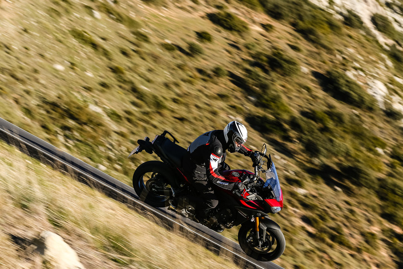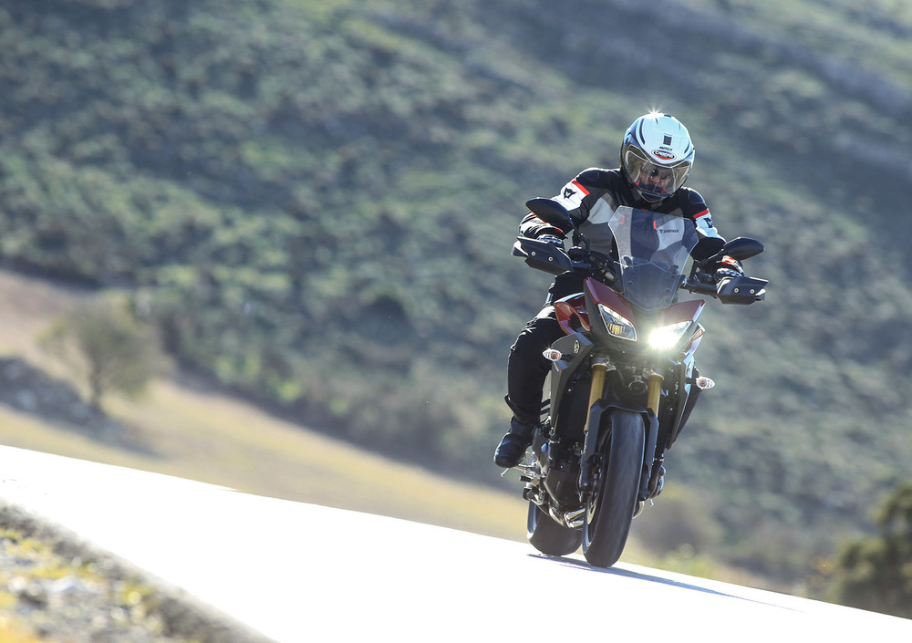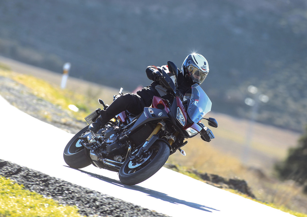 Se invece volete godere dell'aspetto ludico della tre cilindri di Iwata, non ci sono indugi da parte sia del motore che spinge in modo corposo fino a 7.000 giri, e in maniera aggressiva dai 7 ai 10.000, sia dalla ciclistica che si lascia strapazzare per benino senza mostrare il fianco a critiche particolari. Il posizionamento della Tracer al centro della gamma Yamaha, esattamente tra le grosse enduro stradali e le sportive naked e semi carenate, emerge chilometro dopo chilometro. Comoda macina chilometri, si trasforma in tempo zero in fun bike, senza il carattere a volte bizzoso della MT-09, da cui si differenzia anche per la scomparsa totale del fastidioso effetto on/off nel chiudi-apri del comando del gas.