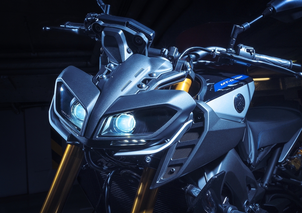 Le linee sono, ovviamente, quelle della MT-09 standard nella versione 2017, che recupera diversi elementi di stile della sorella maggiore MT-10 soprattutto in zona faro, con l’unità frontale a LED composta da quattro proiettori più luci di posizione, in una declinazione che troviamo più riuscita rispetto alla sorella maggiore.