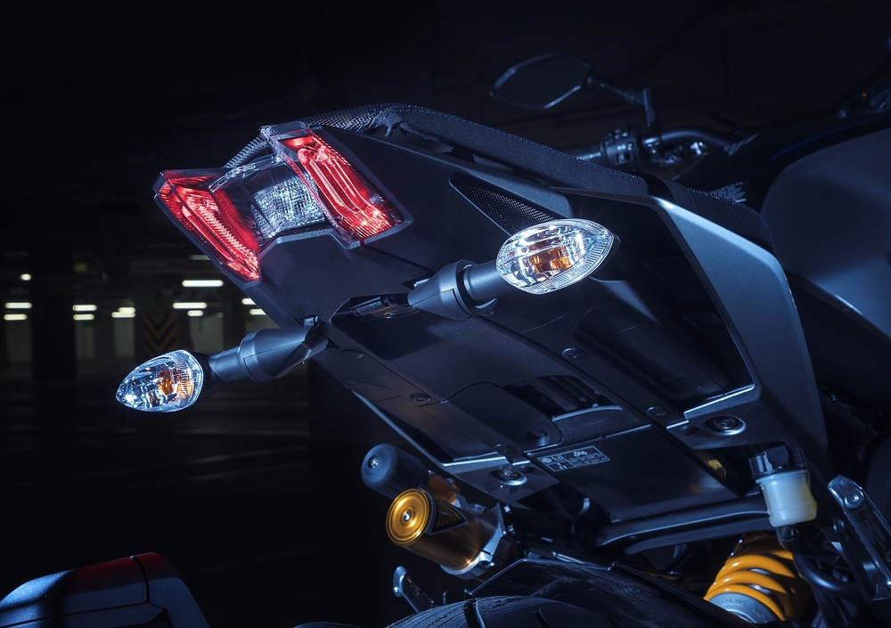 Il resto delle sovrastrutture resta invariato, con il gruppo parafango/portatarga in alluminio e gruppo ottico a LED che scende sul forcellone, rendendo più arioso il retrotreno rispetto al modello precedente anche grazie ad un codino più agile e ruotato verso l’alto, appoggiato su un telaietto accorciato. Il risultato è una sella più piatta, allungata e rialzata.