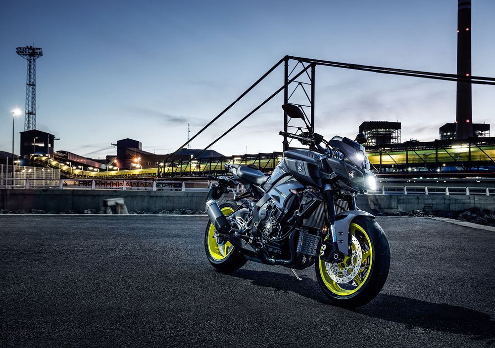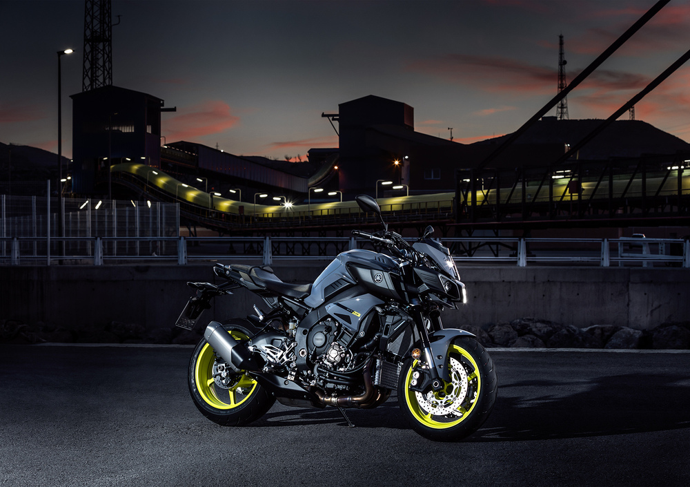 Il carattere espresso dall'estetica della MT-10 aveva bisogno di una meccanica all'altezza, e i tecnici hanno avuto gioco facile - si fa per dire - prendendo spunto e non solo quello niente meno che dalla superbike di casa, la YZF-R1. Come siano riusciti a prendere una supersportiva e tirarne fuori una naked è presto detto, anche se farlo deve essere stato un altro paio di maniche. Partiamo dal cuore della MT-10. Il quattro cilindri Crossplane da 998 cc é stato profondamente modificato, pur mantenendone la personalità, per fare si che le caratteristiche di erogazione si adattassero maggiormente all'uso stradale. Si è partiti da una nuova testa proseguendo con nuovi pistoni, bielle in acciaio al posto di quelle in titanio della R1 ed alberi a camme specifici. Tutto questo ha permesso di abbassare il rapporto di compressione da 13:1 a 12:1. Anche l'airbox è diverso, e passa da 10,5 a 12,5 litri di capacità, inviando un maggior quantitativo di aria agli inediti corpi farfallati dotati di un solo iniettore per cilindro, e controllati dall'YCC-T (Yamaha Chip Controlled Throttle).