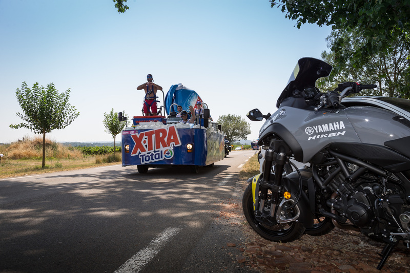 E come già successo in passato con il Giro d’Italia, Yamaha ci ha offerto un’opportunità unica: quella di correre una tappa del Tour - senza dover spingere sui pedali, anche se confesso che mi sarebbe piaciuto - su uno dei mezzi d’assistenza, anche se non a fianco dei ciclisti, per tornare in sella alla Yamaha Niken. Stavolta in quell’allestimento GT che ha debuttato quest’anno ad EICMA e che… giusto giusto ci mancava, nella nostra collezione di prove Yamaha.