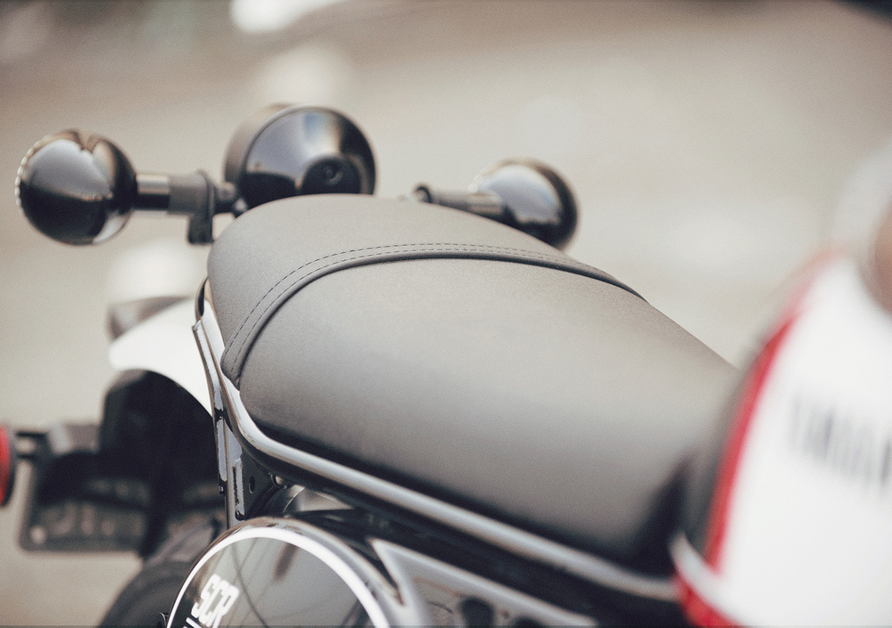 La nuova posizione di guida offre un approccio molto diverso rispetto alla XV, dalla quale la SCR deriva. A partire dalla forma e soprattutto dall'altezza della sella, per cui si passa da quella bassa da bobber (a soli 690 mm) a una dritta e alta (830 mm), sulla quale ci si può spostare agevolmente; peraltro la moto non è larga fra le gambe, quindi non ci sono problemi nel mettere bene i piedi a terra anche se non si è alti.
