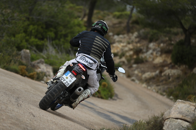 L'ìmpianto frenante della Brembo è costituito da due dischi a margherita da 282 mm all'anteriore e un'unità posteriore dallo stesso profilo dal diametro di 245 mm, naturalmente gestiti dall'ABS disattivabile per l'uso in fuoristrada. La sella è posta a 875 mm da terra, l'interasse è di 1.590 mm.