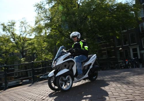 Quanto alla cilindrata, è logico prevederne una versione con motore da 150 cc («più' grande non ci starebbe, in questa configurazione», dicono i progettisti) per chi voglia muoversi frequentemente anche sulle varie tangenziali. Altro particolare di questo nuovo prodotto Yamaha sta nel fatto che il test di lancio non sia stato organizzato a Parigi, la città' più cannibale del mondo in tema di mezzi a tre ruote, bensì ad Amsterdam, sede di Yamaha Europe. Quanto ai francesi, avranno facoltà di scegliere tra il Tricity e il gemello Triptik marcato MBK, marchio non più attivo da anni, in Italia. Col suo simpatico veicolo, insomma, Yamaha conta di acquisire nuovi clienti a caccia di un mezzo facile da guidare, leggero e contenuto nelle dimensioni, agile nel traffico e capace di garantire una sensazione di grande stabilità e sicurezza in ogni situazione, senza dover impegnare cifre da far storcere il naso. E ci sembra che il target sia stato perfettamente centrato. Lo conferma il fatto che il mercato Thailandese, dove il Tricity è stato lanciato lo scorso marzo, ne ha già assorbiti 4.000 esemplari. E in Giappone ci sono già oltre 2.000 ordini: non male, visto che in patria il lancio è avvenuto solo una ventina di giorni fa...