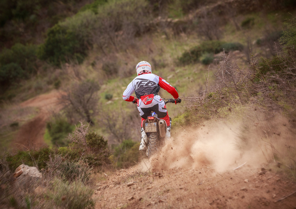 Sugli sterratoni con brecciolino delle colline sarde questa WR "spazzola" che è un piacere, senza mai impuntarsi o prendere sotto, tanto è bilanciata. Altra sensazione invece è quanto trasmette nei tratti in discesa, dove una forcella eccessivamente cedevole, tende a caricare troppo l’avantreno e ciò porta ad un sottosterzo poco piacevole. Il mono, appositamente studiato per l’utilizzo off-road, copia le asperità con grande precisione e soprattutto trasmette una sensazione di stabilità e controllo che ti porta ad affrontare le alte velocità con grande tranquillità.