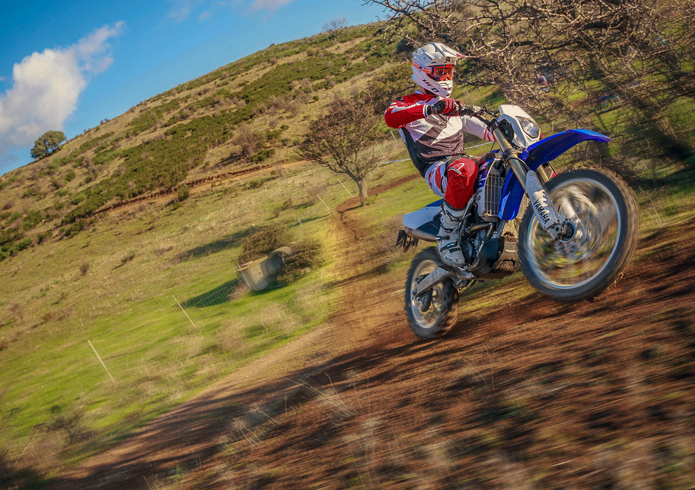 Il propulsore, nella sua versione interamente originale è già pronto e reattivo alla prima richiesta di spinta e sale con una schiena corposa e costante. La versione munita di scarico Akrapovic è ancora più reattiva, tanto da rendere l’avantreno ancora più leggero e maneggevole grazie allo spunto inziale che la marmitta racing è in grado di sviluppare. Con lo scarico in titanio infatti, la WR perde quella sensazione di sovraccarico all’anteriore in quanto la coppia del motore permette al pilota di sbilanciare la guida maggiormente sul posteriore.