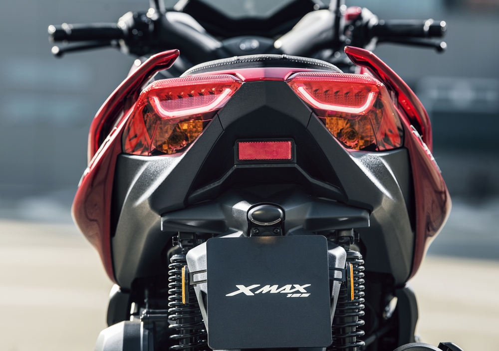 L'illuminazione è affidata ad un gruppo ottico full LED che rende la visibilità ottima in ogni condizione e anche la doppia luce dello stop abbandona la lampadina per passare ai LED. Rimangono invece a lampadina le quattro frecce. Il design del nuovo X-MAX 125 è aggressivo, le linee sono tese a partire dallo scudo, fino ad arrivare al nuovo codino, su cui poggia un'inedita sella sdoppiata, dotata di comodo supporto lombare per chi guida e impreziosita con due placche satinate. Sotto di essa, l'ampio vano sottosella offre la possibilità di ospitare fino a due caschi integrali e, grazie ad una migliore conformazione della superficie, è possibile far stare altri oggetti tra i due caschi, il tutto illuminato da una pratica luce a LED.