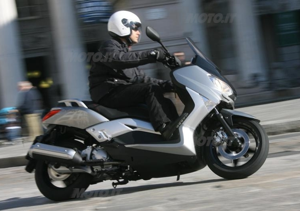 Le caratteristiche di guida permettono all’X-Max di essere efficace sia nella guida cittadina che sui percorsi extraurbani, dove emergono delle doti dinamiche che lo rendono estremamente piacevole da guidare. La rigidità del telaio a traliccio in acciaio emerge in ogni frangente, sullo sconnesso così come sul veloce, nessuna vibrazione e grande precisione di guida caratterizzano il duemmezzo Yamaha. Impostata la curva l’X-Max mantiene la traiettoria scelta con grande precisione, anche se l’asfalto non è dei migliori e presenta rattoppi e buche evidenti.
