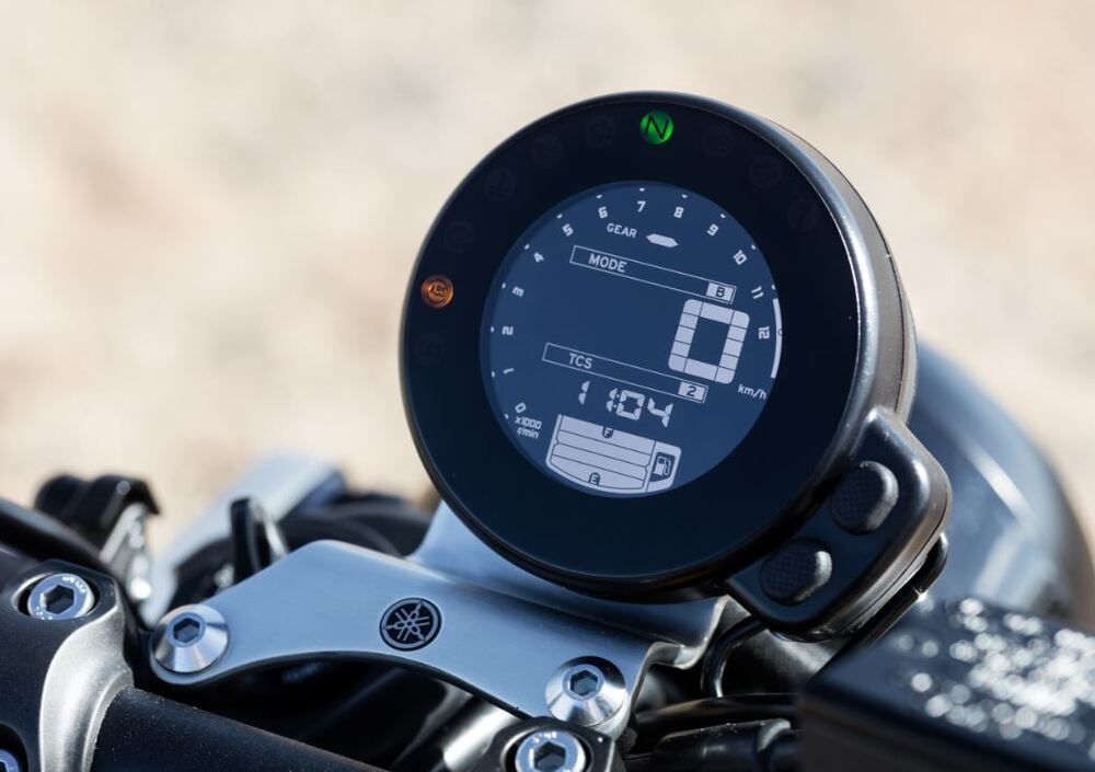 Il cruscotto è formato da un compatto strumento rotondo del tutto simile a quello visto sulla bicilindrica 700. Il display lcd multifunzione ha fondo nero e offre una buona lettura delle molte informazioni (fra le quali ci sono livello benzina, marcia inserita, temperatura esterna, orologio, consumi medio e istantaneo, doppio trip) la corona esterna raccoglie invece le numerose spie di servizio. Un po' scomoda da raggiungere è la serratura che ferma la sella (il vano portaoggetti è tra l'altro veramente piccolo), sistemata sotto la base della sella stessa, mentre la leva del freno è dotata di regolazione per la distanza dalla manopola. Le finiture delle parti in vista sono curate come si deve, qualche compromesso con i costi è stato fatto - in parte anche nella dotazione - ma la costruzione della 900 Yamaha è tutt'altro che fatta al risparmio.