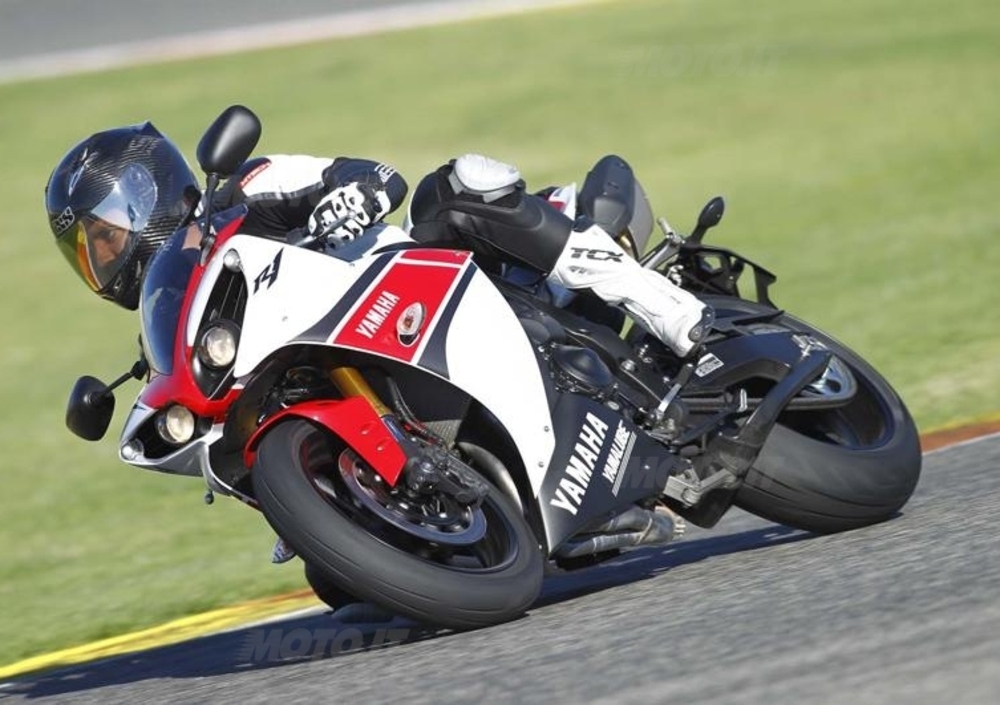 Sotto la spinta poderosa del 4 cilindri Yamaha, il 190 posteriore fatica non poco a tenere a bada i 182 Cv erogati dal quattro cilindri di Iwata a 12.500 giri (la coppia massima è di 115,5 Nm a 10.000 giri), ed ecco che l’elettronica prende il sopravvento, e segnalando con il lampeggio di una spia sul cruscotto, riporta nei ranghi il pneumatico posteriore.