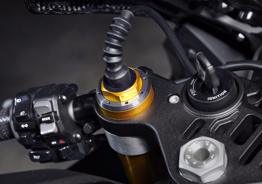 Al posteriore un monoammortizzatore TTX36 ERS, anch’esso rivisto nelle componenti interne per accordare le sue logiche di funzionamento alla forcella. Naturalmente, tutto il sistema Öhlins Smart EC ha visto un'evoluzione degli algoritmi per migliorare ulteriormente nel suo comportamento.