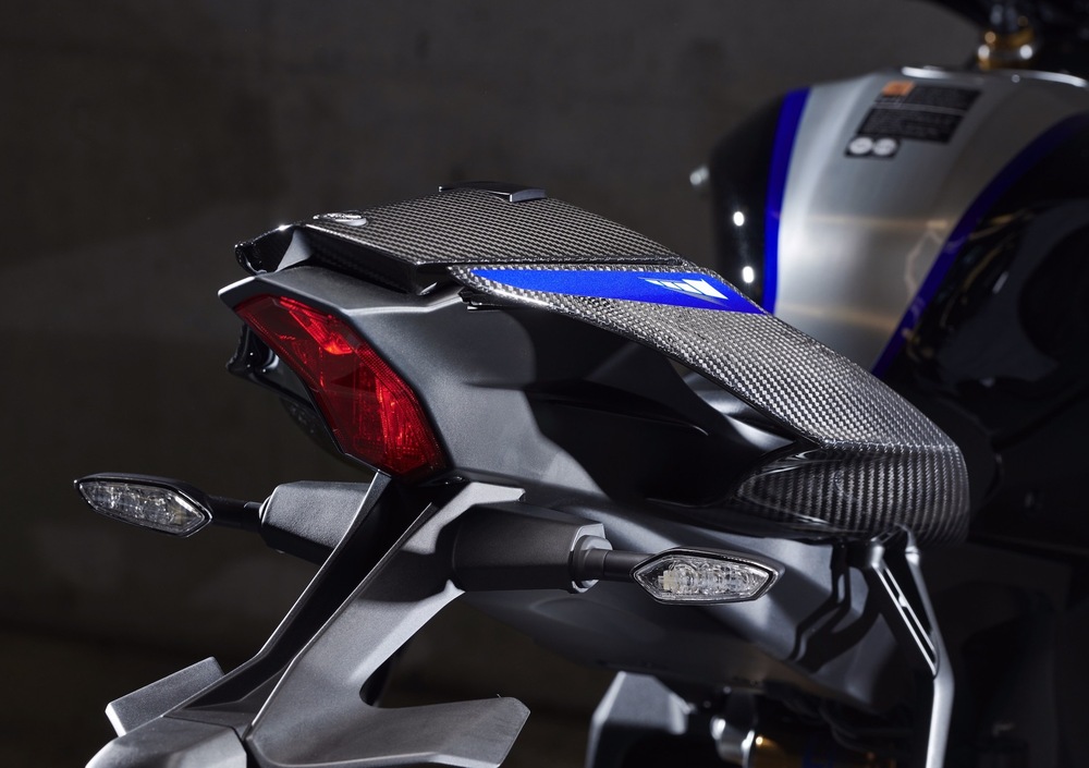 Cambiano anche i pannelli laterali, raccordati diversamente e in maniera più efficace nella zona serbatoio; Per quanto riguarda la YZF-R1M, differenze vanno segnalate anche nel codino, con una nuova unità ora completamente in fibra di carbonio più leggera e filante, che ora permette a Yamaha di affermare con orgoglio che le sovrastrutture della sua ammiraglia sono full carbon.