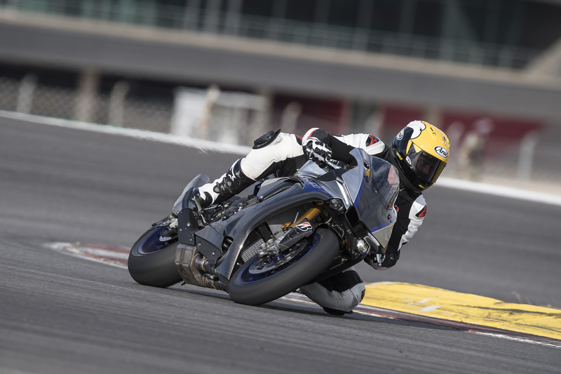 La gommatura slick, Bridgestone V02 soft, ha permesso il raggiungimento di prestazioni e un grado di divertimento altissimi, ma in verità anche le Battlax R11 montate sulla R1 “Standard” si sono rivelate assolutamente all’altezza della situazione. Proprio in sella a a quest’ultima abbiamo potuto constatare le differenze con la sorella “M”: niente che possa stravolgere un giudizio complessivo molto positivo per entrambe, ma la compostezza e l’assetto sempre adeguato ai singoli frangenti apprezzato sulla R1M, non è tale sulla “Standard”, che si guida bene e che rimane su riferimenti molto elevati, ma che in determinati frangenti, come per esempio la staccata in discesa della curva 6 (quella denominata “Curva Vip”), tende a muoversi maggiormente. La possibilità di poter contare su un assetto che si adegua alle diverse condizioni di guida e del tracciato, è un bel vantaggio rispetto ad un assetto che può risultare un compromesso in taluni frangenti.