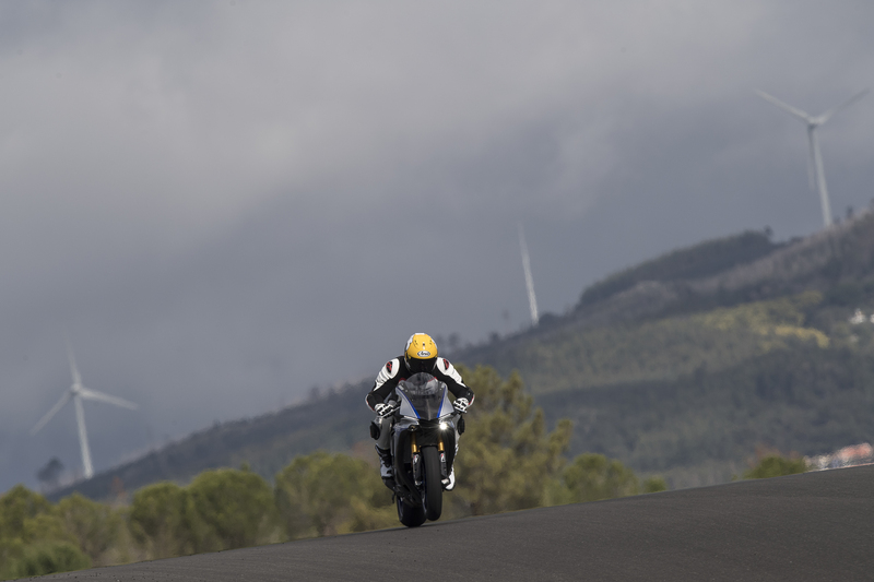 Affrontiamo la pista da ballo, perché più che guidare, sul tracciato di Portimão si balla, e lo si fa saltando a destra e sinistra, molto spesso andando a memoria a causa dei continui scollinamenti che non permettono di vedere dove si andrà a finire, se non facendo affidamento al backup delle esperienze precedenti! In sella, la R1M rimane in tutto e per tutto la moto che conosciamo: compattissima, strettissima tra le gambe e purtroppo con quei semi manubri chiusi che fatichiamo a digerire (fortunatamente si può rimediare scegliendo tra gli optional a pagamento).