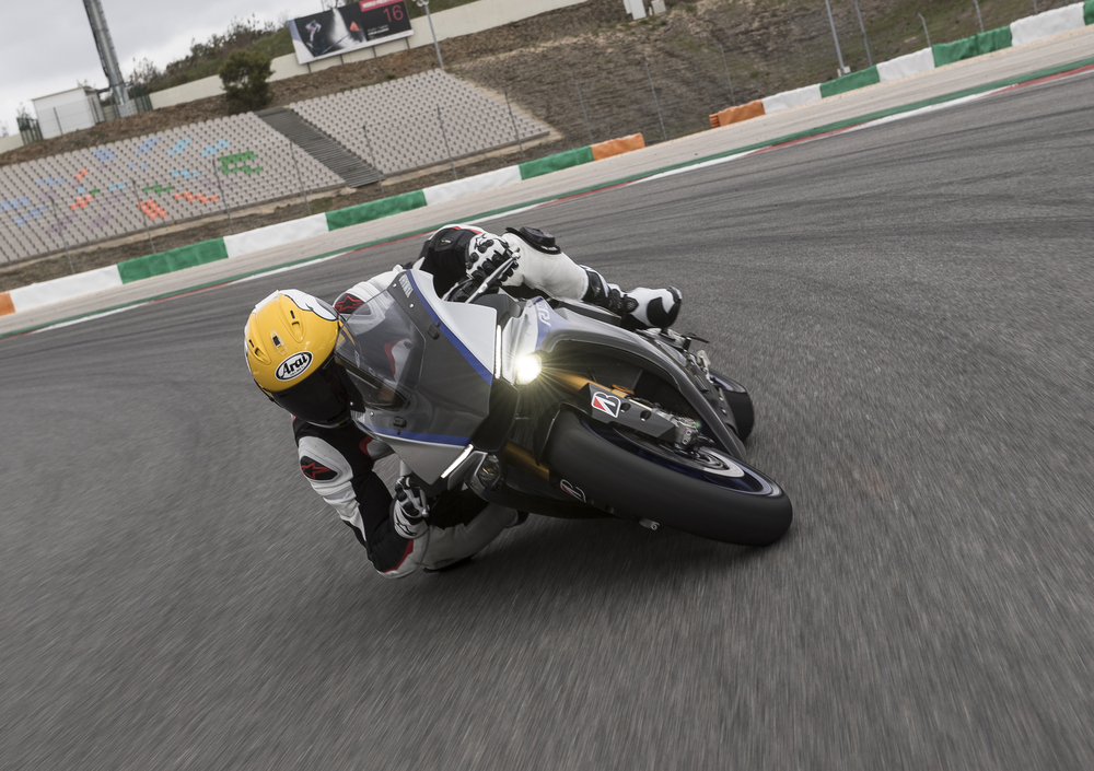 Tutto su questa moto appare meno filtrato, e le reazioni sono dure e pure, come piacciono ai piloti. Rimane la R1 che abbiamo guidato fino ad ora, ma con un evidente disturbo bipolare! Apprezziamo sin da subito l’impostazione di guida, che appare più caricata in avanti ma che non disturba, grazie all’adozione dei semi manubri ben più aperti di quelli delle R1 di serie: grazie a questi la sensazione di controllo appare maggiore, ma a mettere in apprensione ci sono sia la risposta del gas, sia la velocità con cui prende i giri il motore. Spinge tanto di più, e lo fa in maniera diversa e meno filtrata, anche dal punto di vista sonoro, con lo scarico racing Akrapovič che grida letteralmente. Un turno non sarà mai sufficiente ad apprezzarne pienamente le prestazioni, più adatte ad un pilota professionista che non ad un amatore, ma di certo fa capire fin dove possa arrivare e quali siano le potenzialità di questa R1.