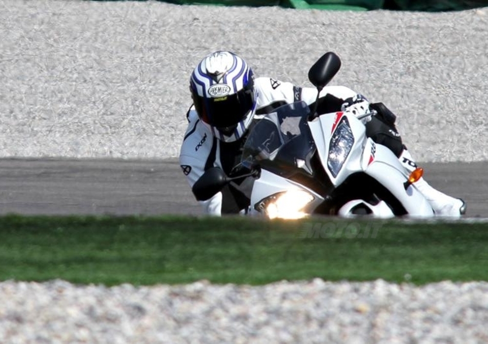 Il motore che solitamente su strada si trova a girare tra i 4.000 e gli 8.000 giri, con discreto brio ma nulla più, in pista frulla alto e spinge fortissimo tra i 10.000 e i 14.000 giri. Esaltante il rumore di aspirazione che accompagna la spinta del propulsore agli alti regimi.