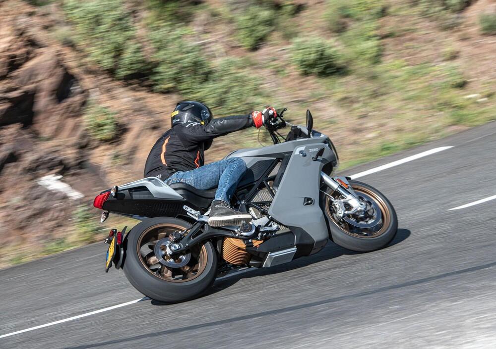 Inoltre la dotazione in termini di controlli della stabilità - trazione – frenata, permettono a questa Zero di avere sempre una “sicurezza residua” ben superiore a quanto richiesto da un cliente tipo. Cosa intendiamo dire? Che guidando normalmente la SR/S si guida piacevolmente e offre una sicurezza dinamica davvero elevata. L’enorme coppia erogata dal propulsore, a qualsiasi regime come per i motori elettrici in generale, consente prestazioni in accelerazione e ripresa che lasciano sbalorditi! Le partenze da fermo si possono trasformare in vere e proprie fiondate, con una progressione incredibile e lineare, mentre le riaperture del gas, passatemi il termine, sono di una prontezza quasi imbarazzante, grazie anche ad un comando dell’acceleratore molto ben tarato e progressivo.