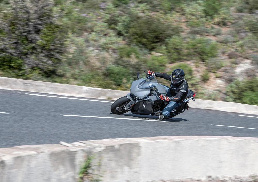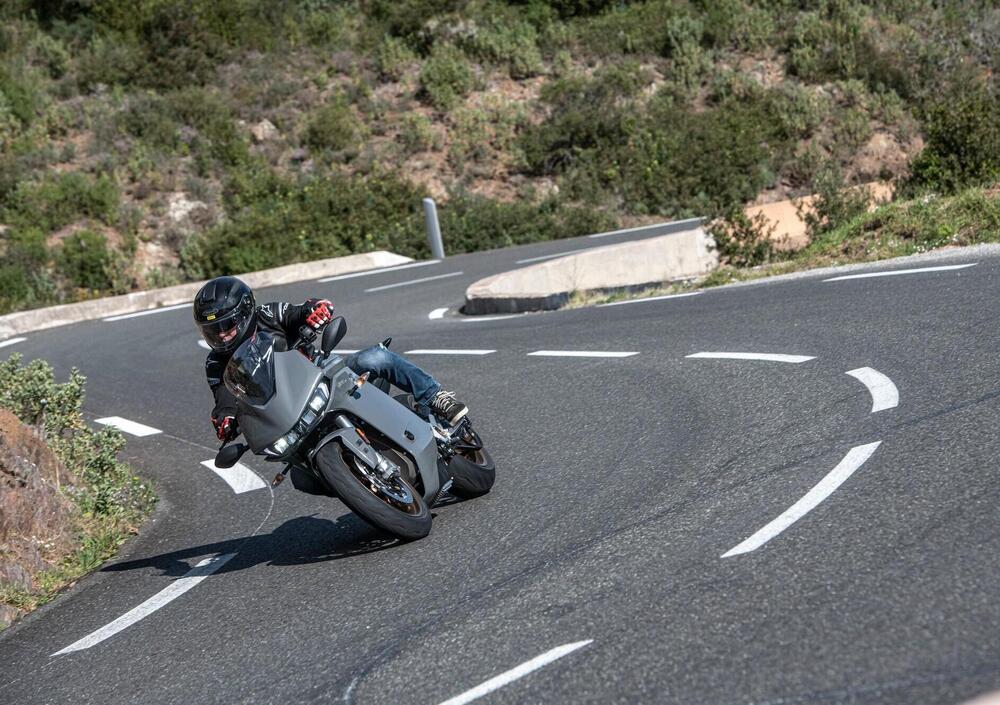 Il secondo aspetto, che lascia perplesso più di un detrattore dell’elettrico, riguarda il peso, 229 kg sono parecchi, ma come spesso accade, la cosa importante è come sono distribuiti. Se stessimo parlando di una sportiva di queste dimensioni, non avrei dubbi a trarre conclusioni negative, ma la SR/S non lo è, e quindi il giudizio è differente. Si guida bene e il bilanciamento è eccellente, solo avvicinandosi al limite, si inizia a percepire un carico sull’avantreno superiore alla media, con una tendenza al sottosterzo maggiore rispetto ad una moto tradizionale.