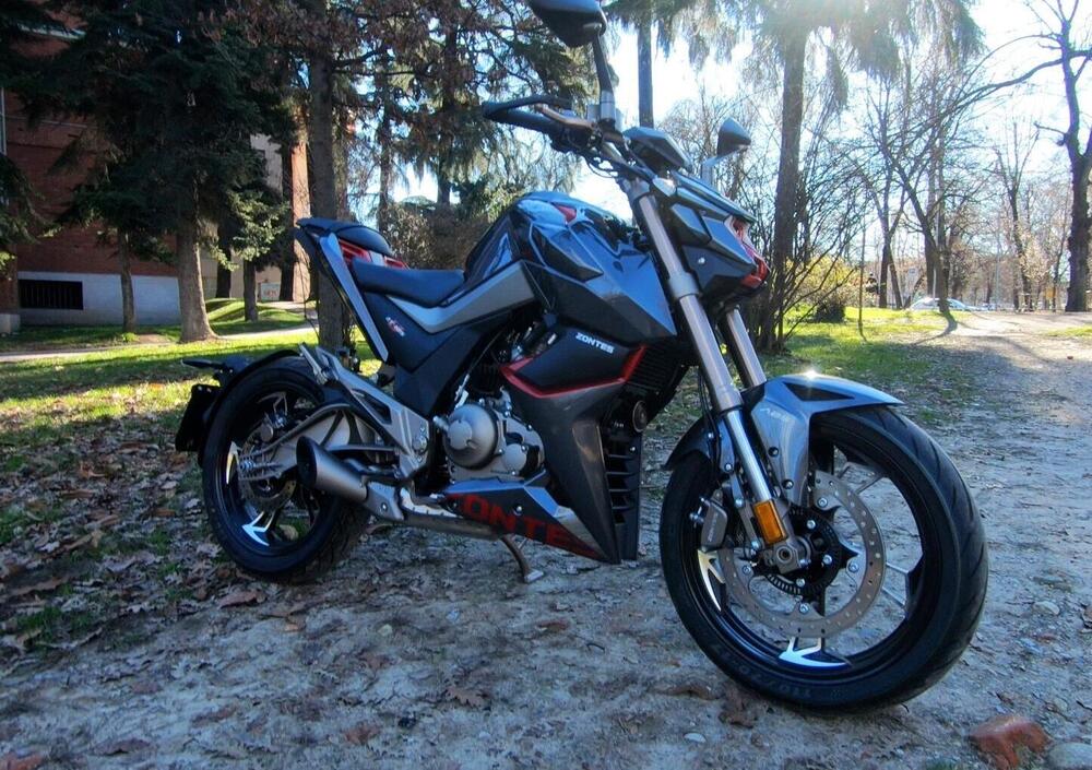Un particolare che va a impreziosire la tecnica costruttiva della moto è il cilindro in lega di alluminio. Dalla fusione alla lavorazione del cilindro in puro alluminio, la parete interna del cilindro senza rivestimento diventa più sottile, permettendo così di impiegare lo spazio risparmiato per ingrandire il canale e dissipare rapidamente il calore all’interno del cilindro. Una buona dissipazione del calore è importante poiché garantisce migliori prestazioni e maggiore durata del motore. Il raffreddamento è ad acqua, il sistema di alimentazione a iniezione della Bosch e la trasmissione è a 6 rapporti con frizione multidisco a bagno d'olio. La Zontes utilizza la Bosch anche per quanto riguarda il sistema ABS, che garantisce una buona frenata grazie anche a un disco anteriore da 240 mm.