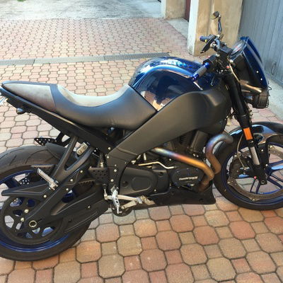 Dopo averla acquistata usata, cambiato pneumatici, atteso la fine dell'inverno, fatto un tagliando e verifica centralina, ho provato la moto sia in autostrada (brevi viaggi) che sul misto, ciò che mi ha dato maggiori sorprese positive sono state 1) la trasmissione, dolce e lunga, non soffre dei fuori giri in generale ed è stupenda rispetto ad altre moto che ho provato e guidato 2) la sospensione posteriore che pur essendo "dura", a velocità normale assorbe buche e colpi senza perdere equilibrio e botte alla schiena. E' chiaro che non è una moto predisposta per lunghi viaggi, non tanto per la postura, quanto per mancanza di portapacchi, borse, è una naked pura e dura, lo zaino può essere la soluzione a patto di non stancare. La postura è un altra caratteristica di questa moto, unica, perché non affatica i polsi ma si sta distesi (dipende dall'altezza anche) e anche le gambe non stanno piegate come in una sportiva, una via di mezzo tra il classico enduro stradale e la sportiva. La facilità di curvare, piegare è strutturale, ma bisogna fare un po' pratica. I freni sono sufficienti ma non il massimo o l'ottimo. Il freno motore è presente solo ad alte velocità ed è scarso, proprio per via della trasmissione dolce. A differenza della lightening x1, che ho guidato, il motore è meno reattivo e la protezione inferiore, ma scalda di meno e ha meno vibrazioni e problemi. Non si compra una moto del genere per fare gare, ma qualche guizzo, capacità in ripresa, robustezza del motore, piacere di guida, ce l'ha ad un livello superiore della media. Ciò che colpisce è il telaio e l'incrocio tra una naked e una motard, infatti si potrebbero montare gomme tassellate o sportive, dipende dall'uso che se ne vuole fare. L'agilità e facilità dovrebbero essere le caratteristiche di guida. I consumi che ho rilevato sono tra i 19 e i 21 km al litro, considerando che è un 984 cc e la massa, sono discreti. Con un pieno si fanno poco più di 200 km prima di andare in riserva. Nel dashboard c'è la spia riserva e anche codici errori, due parziali tachimetri. Sopra i 140 km può un po' ondeggiare, confesso non ho ancora visto la massima velocità o raggiunto i 6000 giri. Attenzione che i freni tendono a scaldarsi più della media, per come sono disposti, si possono usare entrambi, sia davanti che posteriore e la moto resta equilibrata. Non ho il sensore del cavalletto, in numerosi modelli dava dei problemi. Un difetto è la visibilità della luce del freno, si può modificare con un led e migliorare anche le luci davanti altrettanto. In generale tutta la moto si presta a trasformazioni, personalizzazioni.