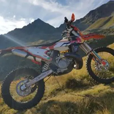 Questa poi è una moto ufficiale che ha vinto il mondiale nel 2022 (modello 2023) con Will Ruprect e quindi ha tutto quello che di meglio si può mettere su una moto da enduro. La moto è stata acquistata direttamente da Jarno Boano a fine campionato ed quando l'ho presa era stato fatto un rialzo a nuovo. Significa che aveva il telaio e il motore nuovo come tutte le componenti accessorie. Tutto è come sulla moto ufficiale salvo il settaggio delle sospensioni che è stato fatto per me (che no sono uno da mondiale).