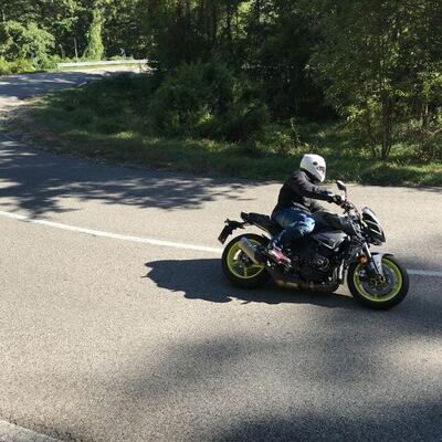 La moto è stupenda da guidare sui passi di montagna, grazie ad una ciclistica ben a punto. Agile, leggera, rapida nei cambi di direzione grazie all' interasse corto. Guidandola si nota subito la nobile discendenza da sua maestà R1. Il motore big bang è rapidissimo a salire di giri ed eroga gran coppia ai medi. Nelle mappe più tranquille (STD e A) è ben gestibile. Bellissimo il sound di scarico che ricorda le note del v4.