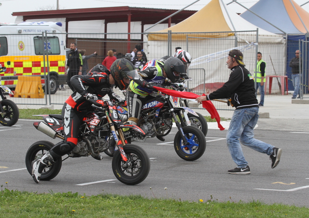 Si schiera poi la categoria Honda CRF150 Red Moto, si accendono i riflettori e la tensione inizia a salire. La presenza del pilota in prestito dal mondiale SSP600 Kevin Whar, che stacca in qualifica un giro secco di gran rispetto (1'13"108), non può che arricchire lo spettacolo offerto dai quattro valvole made in Japan.