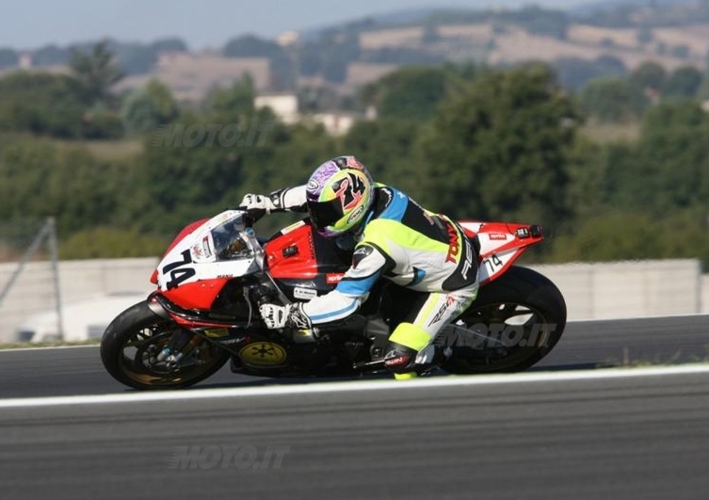 Al termine della prima tornata è il poleman Gianluca Fioresi (Honda) a guidare la corsa davanti alla wild card Matteo Milanese (BMW), già vittorioso ad Imola ed impegnato con gli pneumatici Michelin nel National Trophy, ed al brianzolo Fabio Villa (BMW), che fin dall’avvio del campionato comanda nella classifica generale. Poi Milanese passa a condurre e riesce ad accumulare, giro dopo giro, un leggero vantaggio su Fioresi che diventa di un secondo. A quel punto il trentottenne commerciante di moto veronese perde un po’ il ritmo (“quando sono solo in testa, mi capita sempre così”, spiega) mentre il quarantaduenne bolognese Fioresi, animato da una gran voglia di vincere (“vittoria assoluta, non alle spalle di una wild card come a Misano”, racconterà dopo l’arrivo) si scuote e si rimette progressivamente nella scia del battistrada.
