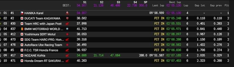 Al secondo posto la Ducati Kagayama, terza HRC with Japan Post con Johann Zarco (che è stato uno dei piloti impegnati in pista).
