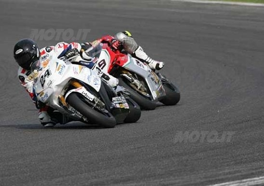 Allo spengersi del semaforo Claudio Corti (Yamaha - Motor Italia) brucia il poleman Luca Scassa (MV Agusta - Unionbike Gimotorsports) il quale però all'uscita della Campagnano torna a condurre le danze su Corti, Lorenzo Mauri (Ducati - Team Sprimg), Luca Conforti (Honda - Emmebi Team), Maurizio Prattichizzo (MV Agusta - Team Factory SBK) e Norino Brignola. In quest'ordine si chiude il primo passaggio.