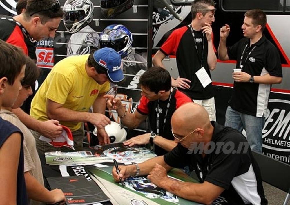 Nel paddock del Mugello la Premier ha organizzato due grandi stand dove gli appassionati hanno potuto non solo incontrare i piloti e ritirare i loro posters autografati, ma hanno anche potuto ammirare l'intera collezione di caschi Premier 2008.