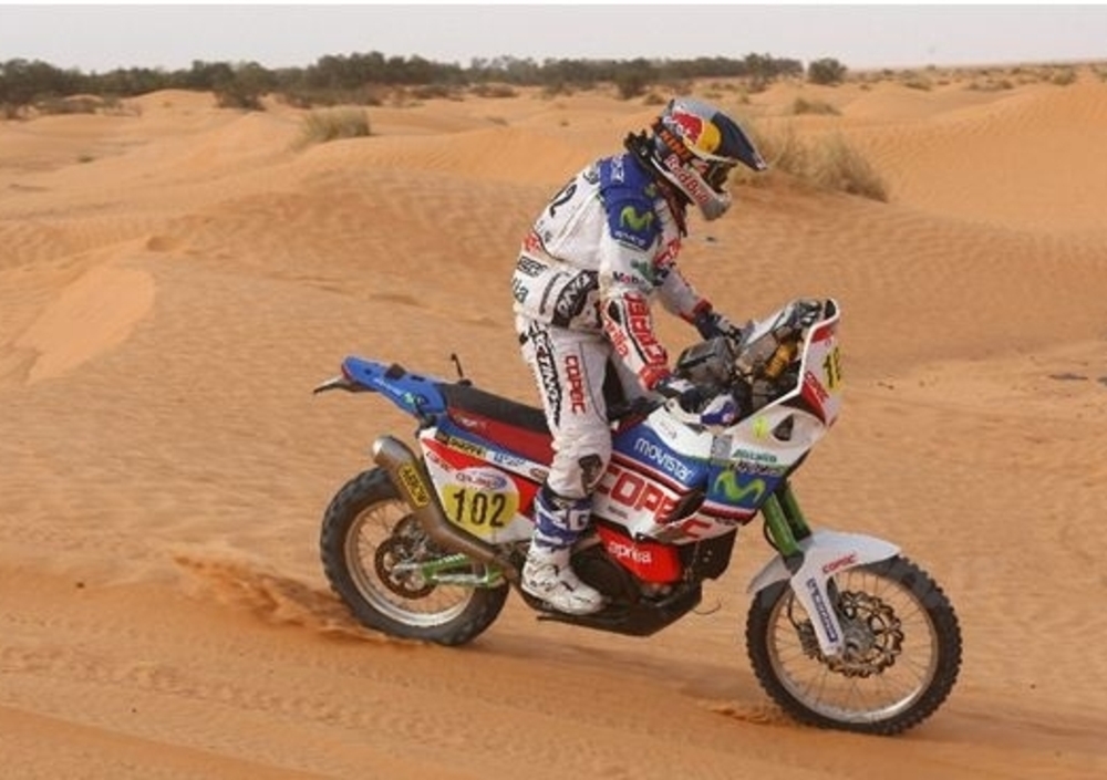Francisco Lopez e l’Aprilia RXV hanno vinto il Rally di Tunisia ed è una vittoria storica! La prima per il grande pilota cileno in una gara Mondiale, il coronamento di un cammino che va avanti dal 2005, l’anno del suo debutto nei rally. E la prima per Aprilia e per la sua RXV 4.5, una moto che sembra nata per solcare le sabbie dei deserti. Sono passati poco più di due anni dal Pharaons Rally 2008, la prima gara africana della quattroemmezzo di Noale e da allora i traguardi si sono succeduti a ritmo incessante, passando per il terzo posto assoluto alla Dakar 2010 per arrivare a questa fantastica vittoria in terra tunisina.