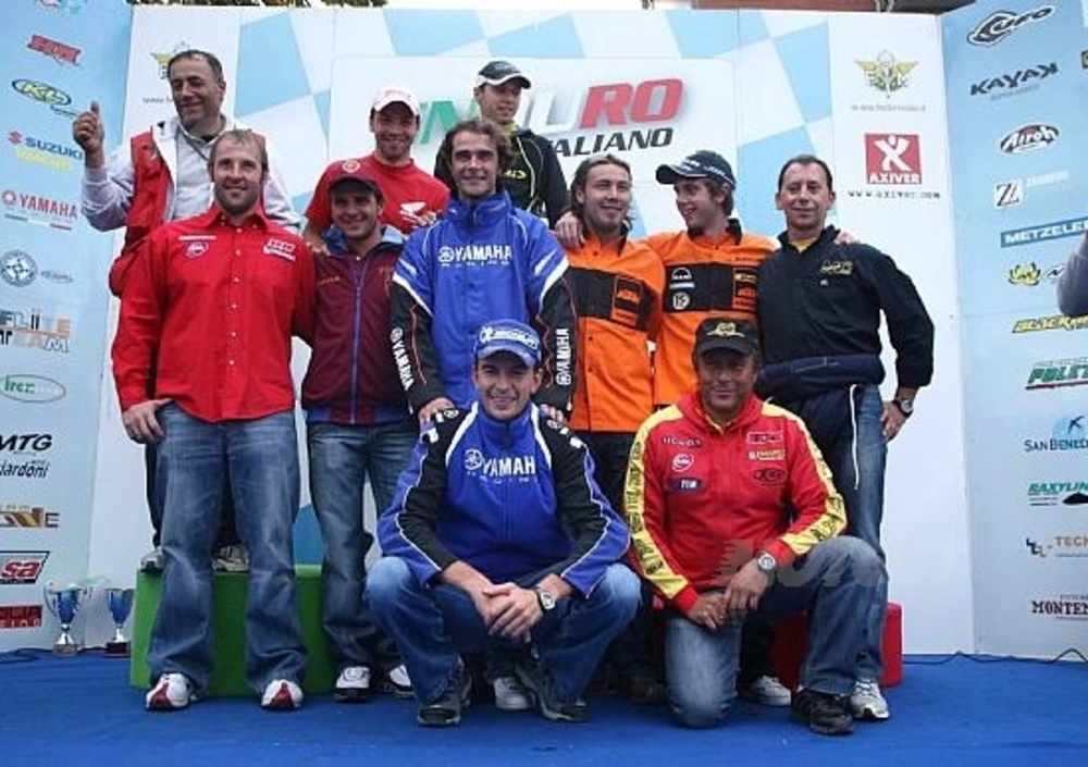 Una stagione che si chiude che vede ancora una volta con una lotta da cardiopalmo per l’assegnazione dell’assoluta di giornata con un Ahola che strappa il primo gradino per meno di due secondi ad un strepitoso Simone Albergoni (Ufo Corse Yamaha) penalizzato nella prima prova in linea per una scivolata che fa perdere secondi preziosi. Al poliziotto di Spirano (BG) l’onore come primo pilota italino per la consegna del “3° Memorial Davide Sturaro” ragazzo scomparso cinque anni fa proprio durante un’uscita enduristica e che il moto club Bobbio ha giustamente voluto commemorare intitolandogli quest’epilogo di stagione. A chiudere il podio assoluto il simpatico francese dagli occhi di ghiaccio Aubert. Gli Assoluti d’Italia danno quindi ufficialmente l’arrivederci al 2008.