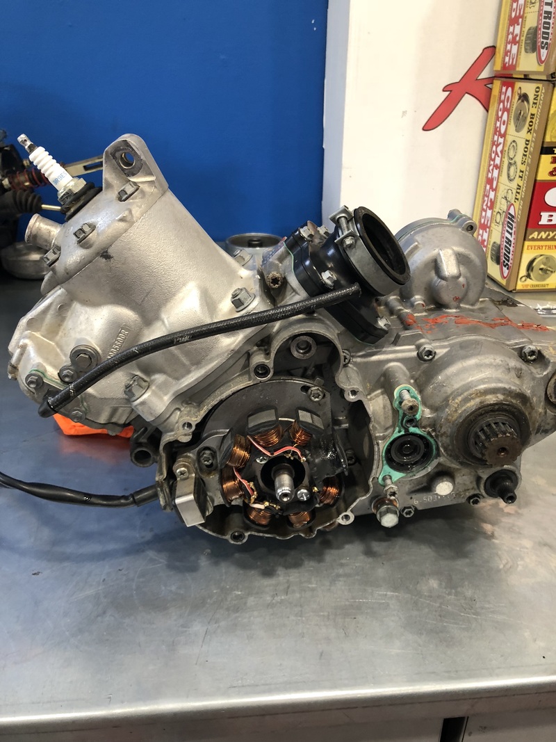 Ciò che è stato fatto in concreto è stato portare entrambe le moto a telaio, aprire il motore, cambiare qualsiasi componente soggetta ad usura (albero, biella, cuscinetti, paraoli, guarnizioni, pistone), aprire forcelle e mono effettuando cambio olio e paraoli, scorrevolezza e taratura. Il lavoro è stato effettuato in vari giorni con una grande attenzione al dettaglio.